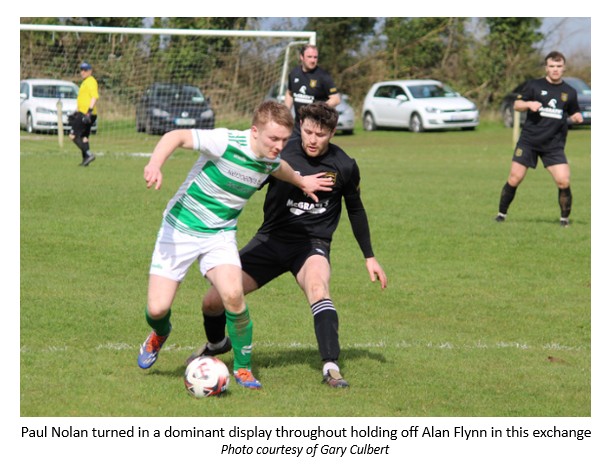 far between in the opening 20 minutes. The game exploded in life in a 2 minute spell that eventually saw the away side take the lead. Knigh swung in a corner from the left and Darren Moran headed it back across goal where Alan Flynn's looping effort came back off the crossbar. Almost immediately after Rea took the lead when a ball out from the back by Greg Kennedy found James Deegan who flicked it in over the top to Cillian Kennedy, Cillian scrambled the ball out to the onrushing Paddy Dawson who made no mistake with a low finish to the keepers near side. Just on the stroke of halftime Rea nearly added to their tally when a long ball in over the top from Paul Nolan found James Deegan but his effort was well saved by the keeper.